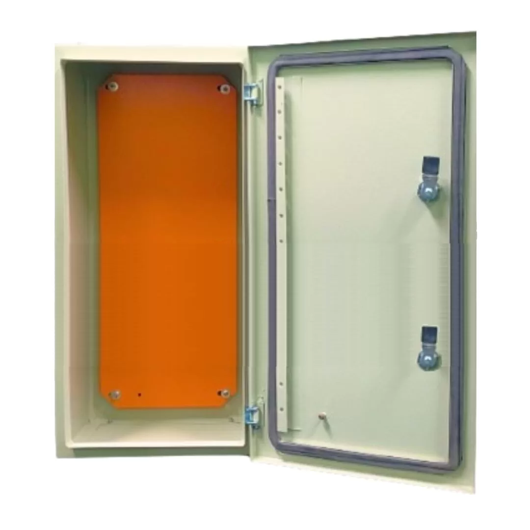 PORTA COM BORRACHA DE VEDAÇÃO, TIRETA PERFURADA PARA AMARRAÇÃO DE CABOS, PINO DE ATERRAMENTO, ABERTURA 155º.